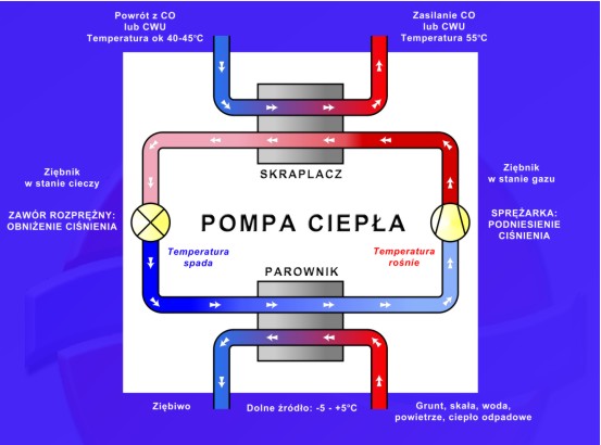 W obiegu termodynamicznym pompy ciepła zachodzą w sposób ciągły