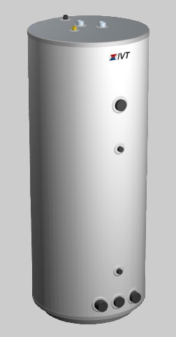 Zasobnik IVT D350/150 wykonany jest jako zasobnik dwupłaszczowy. Ta specjalna konstrukcja umożliwia optymalną współpracę z pompą ciepła. Zbiornik z ciepłą wodą użytkową znajduje się wewnątrz zbiornika z wodą grzewczą. Pojemność zbiornika z c.w.u.wynosi 350 dm3, natomiast zbiornika zewnętrznego z wodą grzewczą 150 dm3. Zbiornik wewnętrzny na ciepłą wodę użytkową wykonany ze stali nierdzewnej.