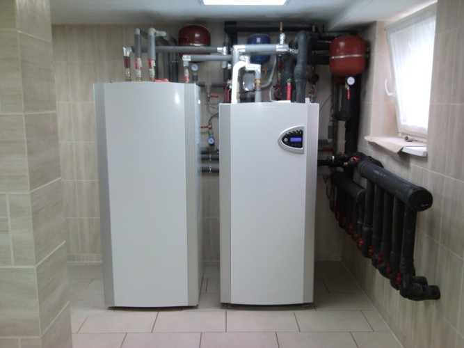 Instalacja pompy ciepła Greenline D33 wraz z kotłem na biomasę |